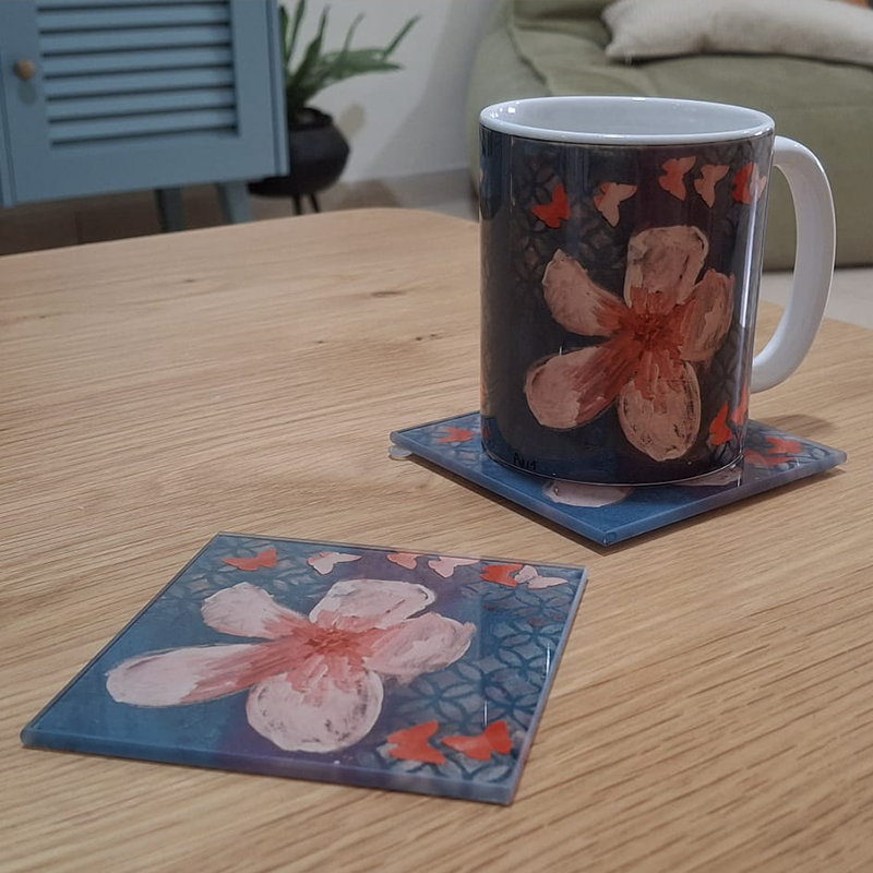 GP001 ☕ תחתית זכוכית לספל – אומנות אישית בכל לגימה 🎨🌸