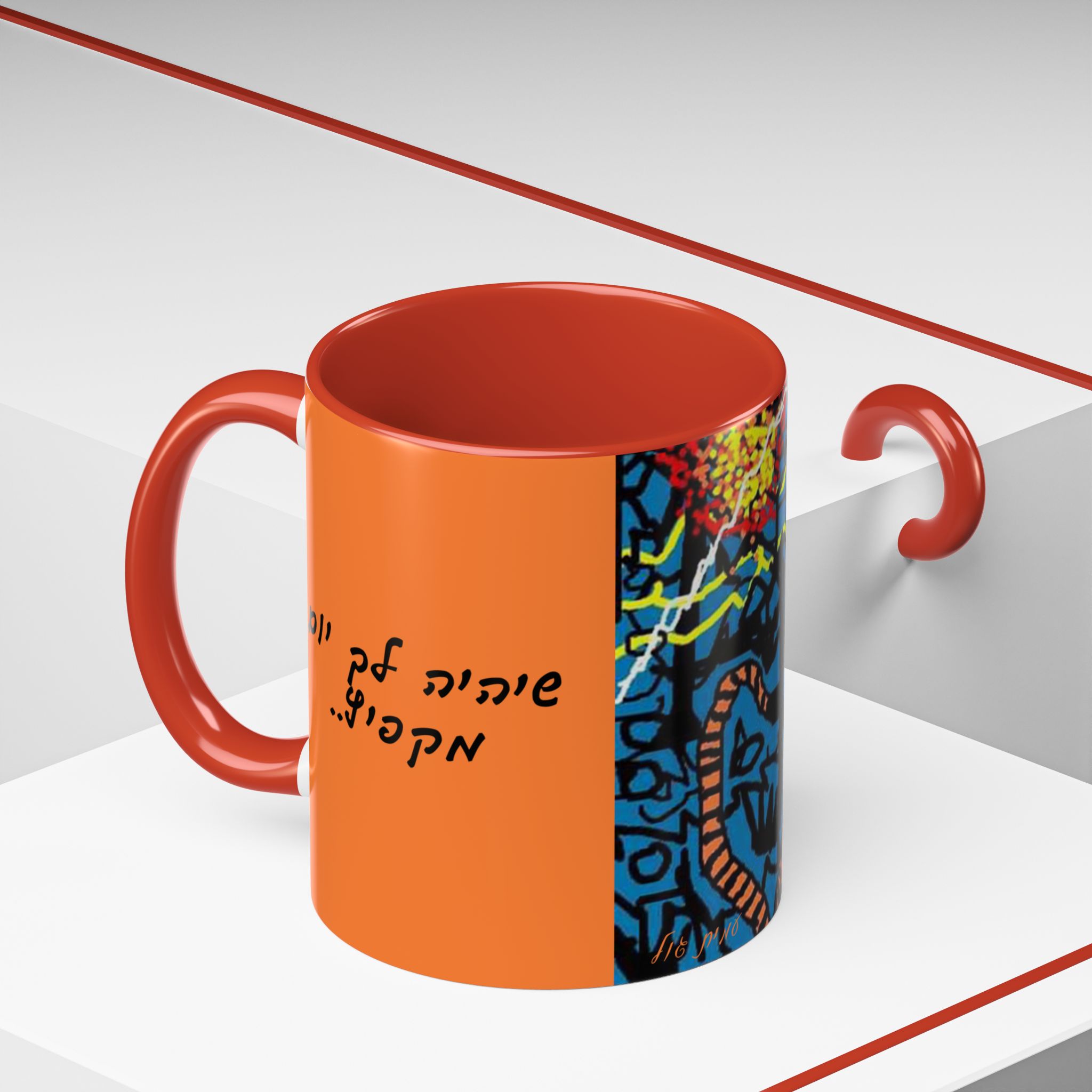 כוס קרמיקה ידית ופנים צבעוני 💙